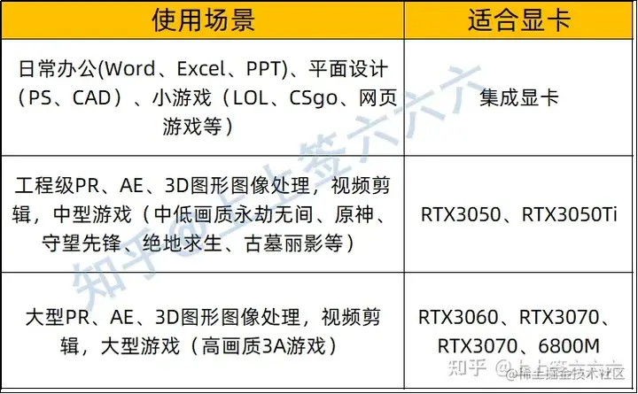 进阶独显:工程级PR、AE、3D图形图像处理,视频剪辑,中型游戏(中低画质永劫无间、原神、守望先锋、绝地求生、古墓丽影等)