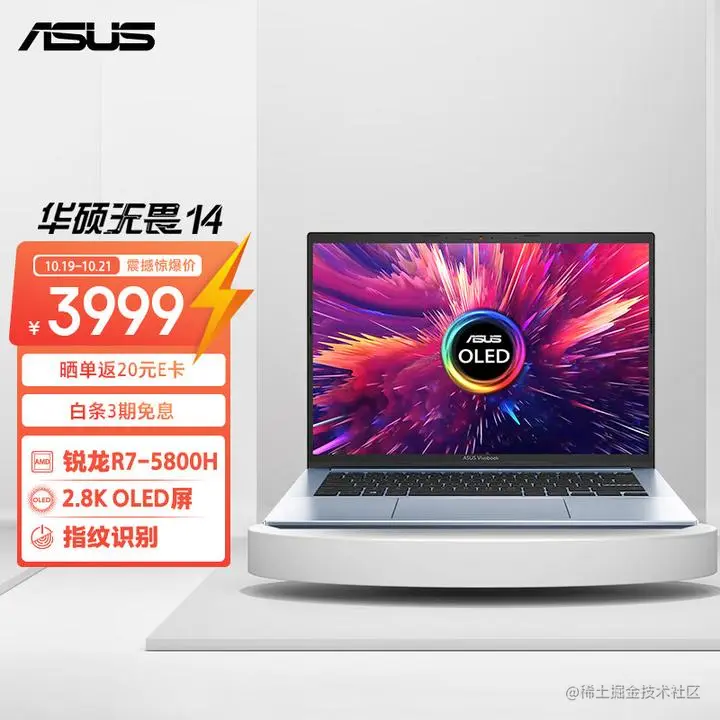 华硕无畏 14 OLED版 轻薄笔记本电脑(R7-5800H 16G 512