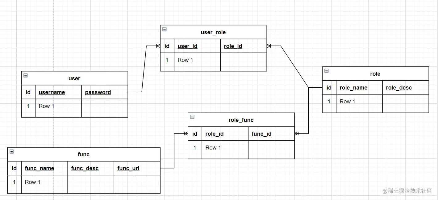 - 一个user可以拥有多个role,一个role也可以被多个user拥有, 一个 角色拥有多个权限即功能,一个权限可以被多个role拥有。