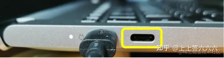 什么是笔记本Type-C/USB-C接口?可以理解为跟目前主流安卓手机充电接口长的一模一样。笔记本上接口图示: