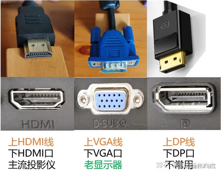 常见的投影仪或显示器接口如下,不熟悉的同学照着下图找就好了