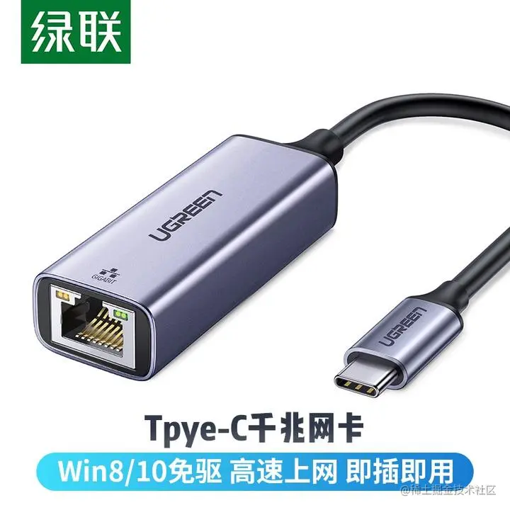 绿联Type-c转千兆网络口,全金属壳设计,支持苹果/win,免驱动即插即用,自带Type-c接口支持边充电边上网,充分解决笔记本/手机打游戏无线延迟或信号不稳定的问题。
