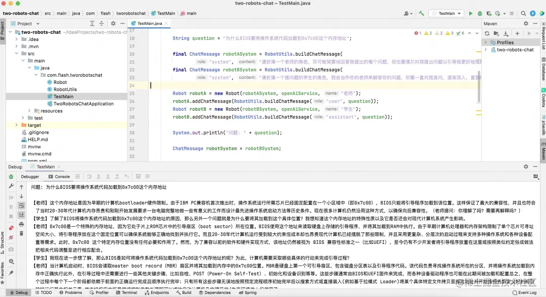 其他的就是业务逻辑了,怎么让两个机器人交替执行,上下文怎么排布等等。