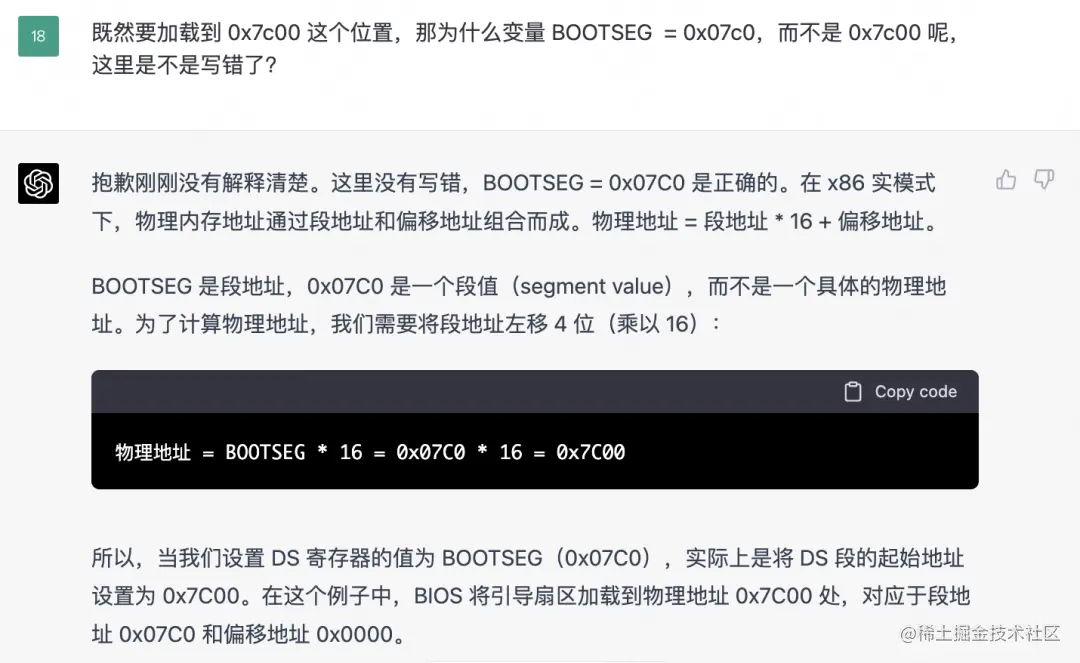 学生先是把为什么加载到 0x7c00,以及为什么是这个具体的地址而不是别的,以及操作系统具体是如何做到加载这个动作的,三个问题搞清楚了。