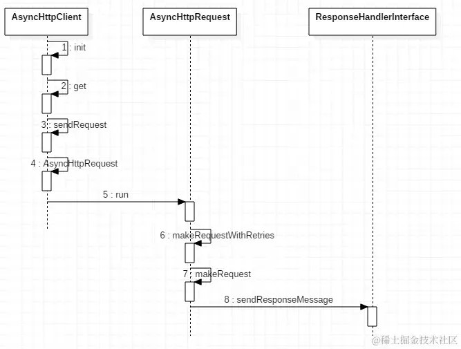 调用AsyncHttpClient 的get方法后,其实是将请求封装成一个 Runnable 对象,并且向线程池中提交这个任务。最后调用回调接口,将结果返回到主线程中来。