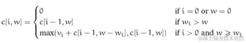 设设有n个物品,背包的重量为w,C[i][w]为最优解为:
