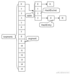 假如容器里有多把锁,每一把锁用于锁容器其中一部分数据,那么当多线程访问容器里不同数据段的数据时,线程间就不会存在锁竞争,从而可以有效的提高并发访问效率,这就是ConcurrentHashMap所使用的锁分段技术