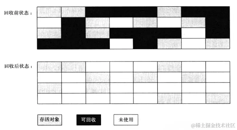 它主要有两个问题,一是效率不高,标记和清除过程的效率都不高,另一个是空间问题,标记清除之后会产生大量不连续的内存碎片,空间碎片太多,当程序在运行中需要分配较大对象,因为碎片过多,可能无法找到足够的连续内存而不得不提前触发另一次垃圾收集动作