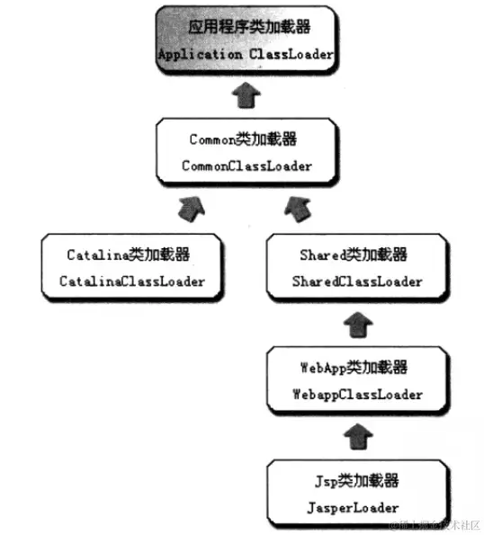 第2点稍等复杂点,以tomcat为例,tomcat服务器所用到的jar包不希望web应用应用,于是tomcat设计了以下经典的类加载模型: