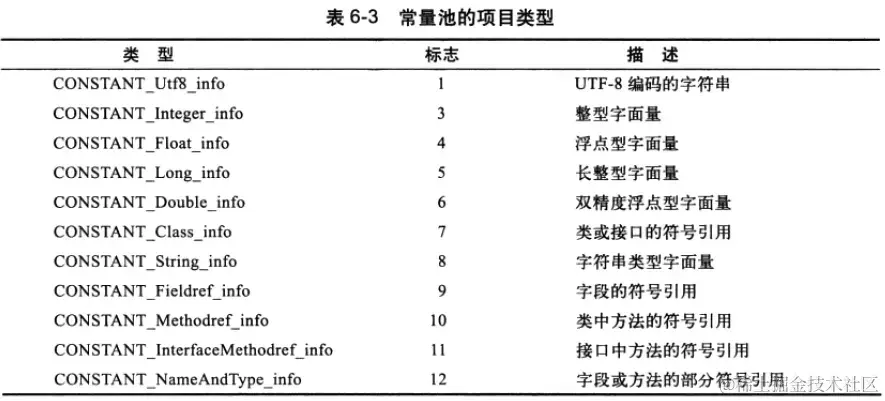 主版本号后边就是常量池了,常量池中的所有项目类型为: