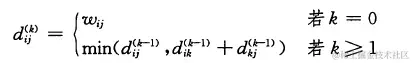 设d(k)ij为从结点i到结点j的所有中间结点全部取自于集合 {1, 2, . . . , k} 的一条最短路径的权重。当k=0时,即最短路径中不包含任何中间结点,此时的最短路径就是权重本身值。