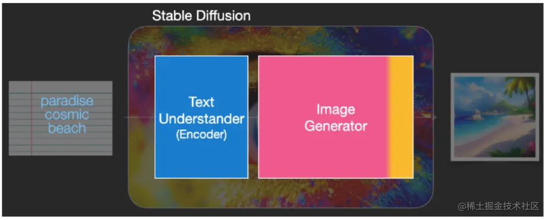 Stable Diffusion良好解决时间成本和经济成本问题。如果要生成一张1024*1024尺寸的图像,Latent Diffusion通过在一个潜在表示空间(Latent Space)中迭代“去噪”,然后将表示结果解码为完整的图像,让文图生成能够在消费级GPU上以10秒级别的时间生成图片,大大降低了业务落地门槛。