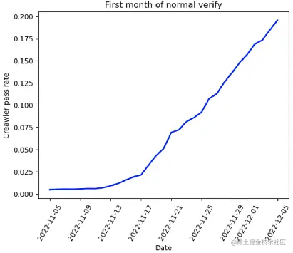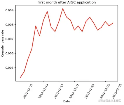 **1、风险拦截率提升19%。**使用静态图库作为验证码图片时,图库更新一周以后,爬虫的拦截防御能力会出现明显的效果衰减,一个月左右,恶意爬虫通过率会达到20%。使用AIGC生成图片后,爬虫通过验证通过率立即下降至0.8%以下,且长时间维持在1%以内。相比之前静态图库的情况下,AIGC大幅提高了验证难度和防御能力。