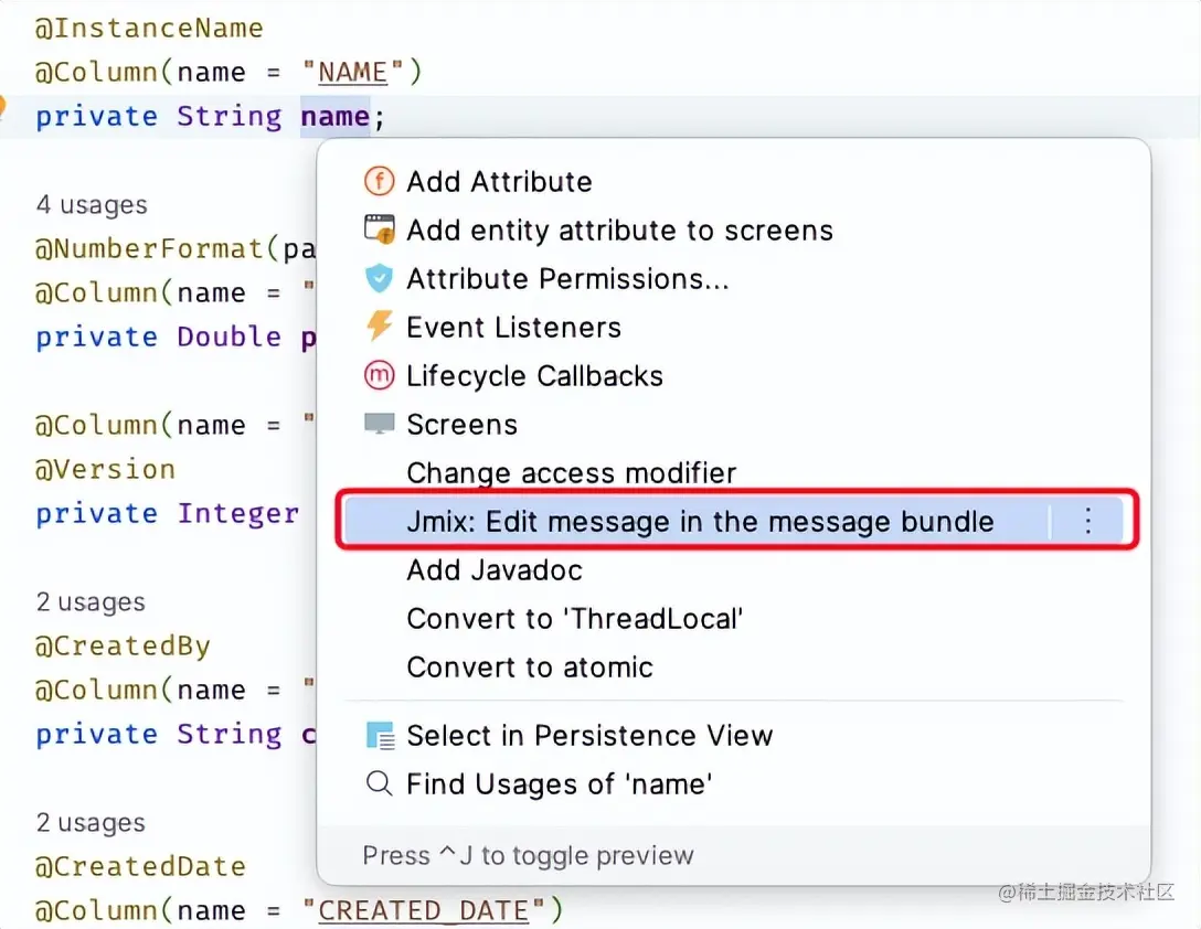 - 支持在代码编辑界面添加或修改实体字段的本地化名称: