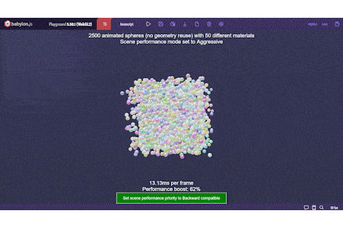 功率和性能是 Babylon.js 的核心,6.0 版通过性能优先模式(Performance Priority Modes),使渲染和性能提高了 50 倍。这些新模式为开发者提供了新的控制权,使他们可以通过选择向后兼容模式、中间模式或激进模式来提高体验的性能。在这 3 种不同的模式中选择,可以给你带来不同程度的功能和灵活性。