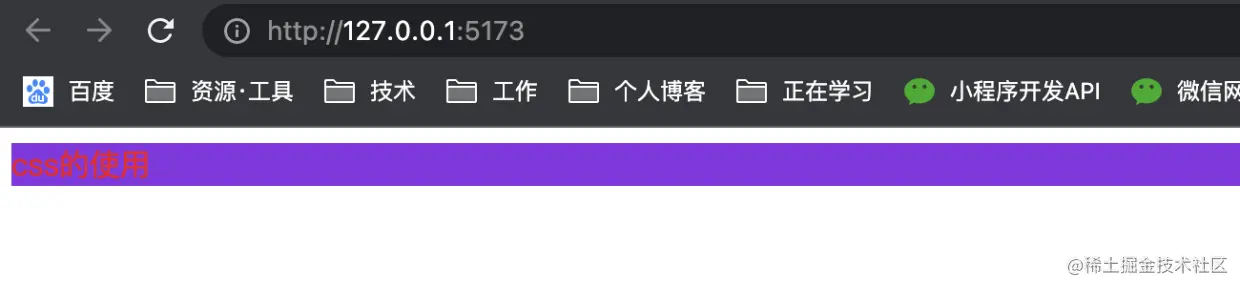 - 运行看下效果:div的背景颜色和文字的颜色都是我们分别在index.css和other.css里设置的颜色