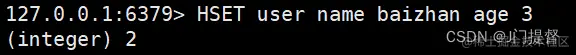 127.0.0.1:6379> hmset user1 name baizhan age 15