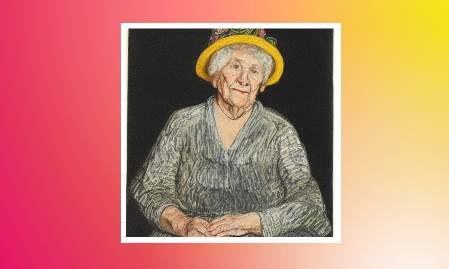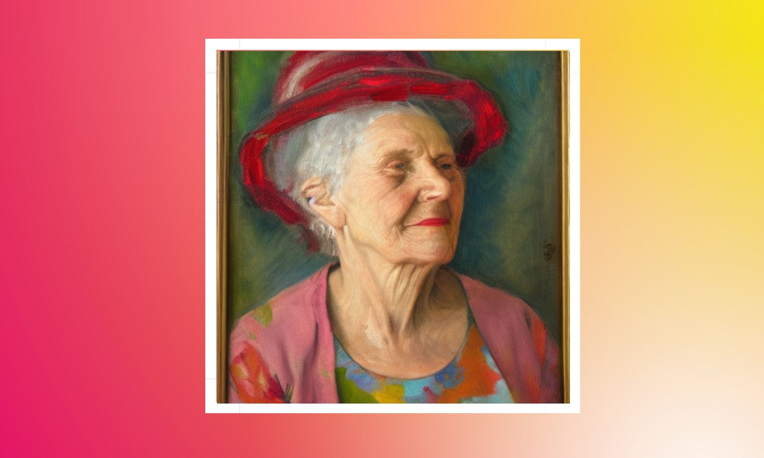 上图是 "戴花帽的老年妇女肖像,儿童画",但我们可以看到,一旦应用其他提示,这将发生变化。