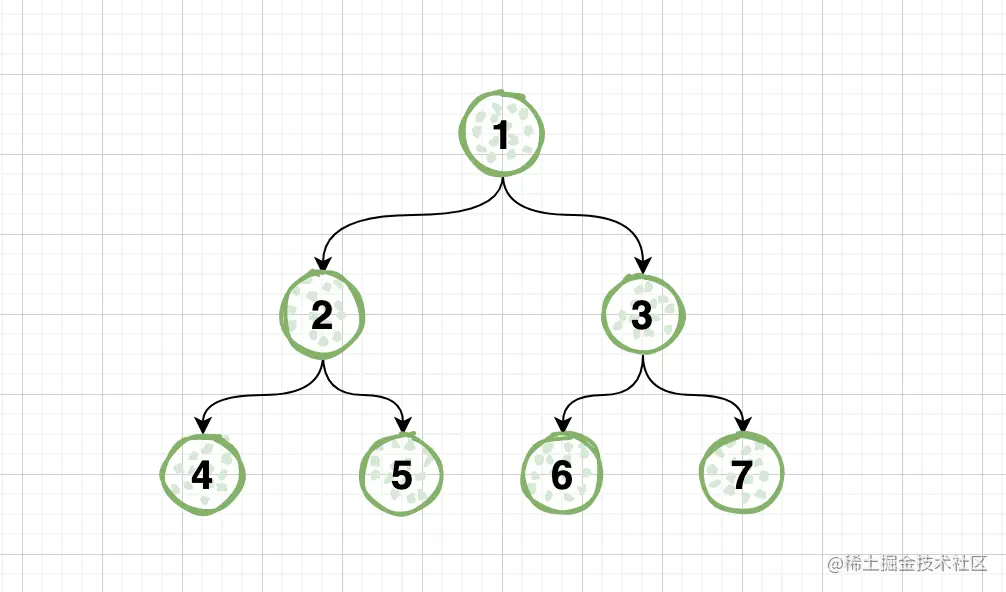 节点7弹出,节点7没有子节点,直接弹出,不入栈。 - 栈中没有节点了,结束。