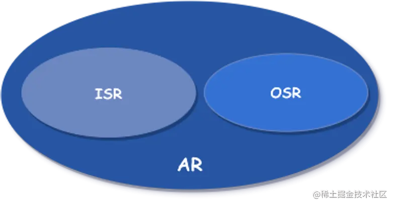 分区中所有副本统称为AR,所有与leader副本保持一定同步的副本包括leader副本组成ISR,ISR是AR集合的一个子集,消息先发送给leader副本,然后follower副本从leader副本中同步消息。与leader副本同步滞后过多的副本不包括leader副本组成OSR