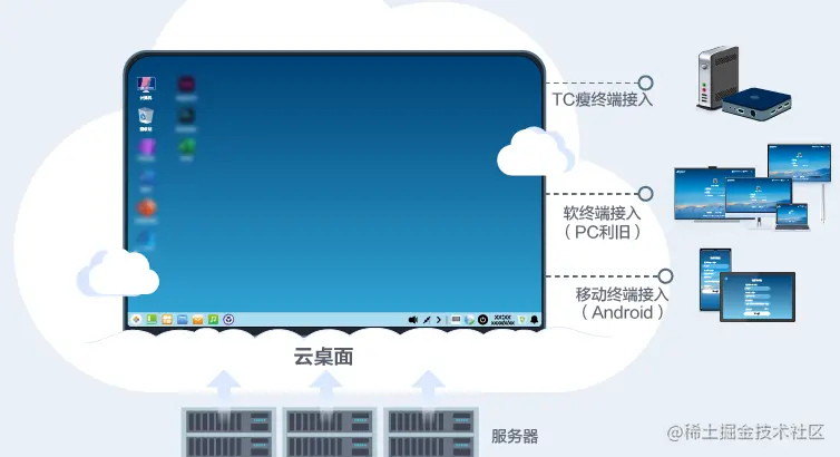 快速部署 因此前受疫情冲击,当下企业复工复产会面临资金紧张时间紧迫的状况,而企业使用传统电脑办公,一次性购买成本高,软硬件更新换代快,配置升级/变更繁琐,一般2-3年就会面临淘汰风险。