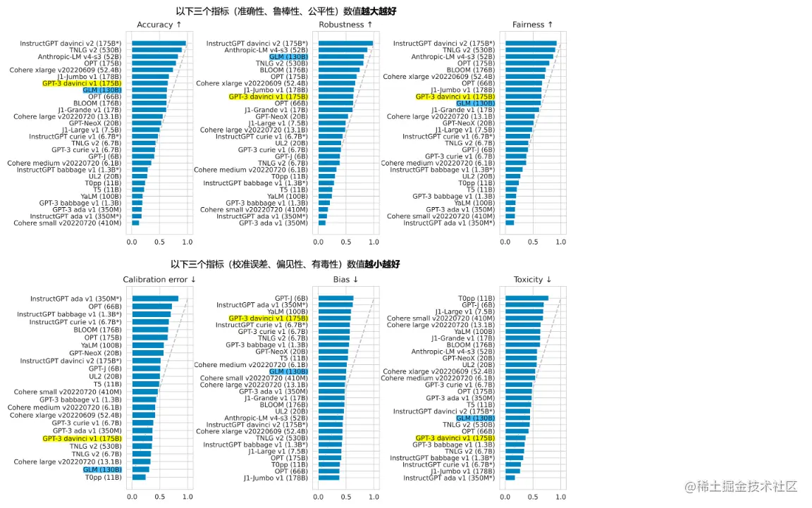 下图是2022年10月斯坦福大学对当时主要大模型的评测结果: