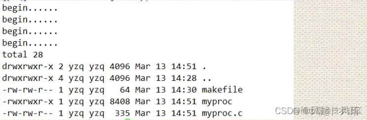 运行可执行程序发现,只有begin 以及执行 ls -l -a显示的指令