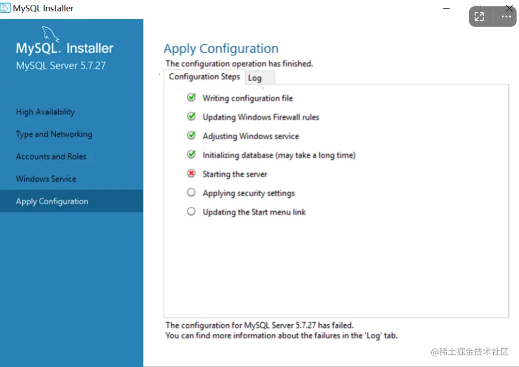 1、starting the server失败,通常是因为上次安装的该软件未清除干净。