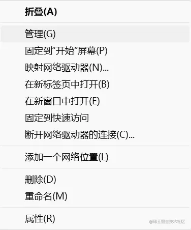 2、starting the server失败后,不要动任何设置,右键我的电脑,点击管理。