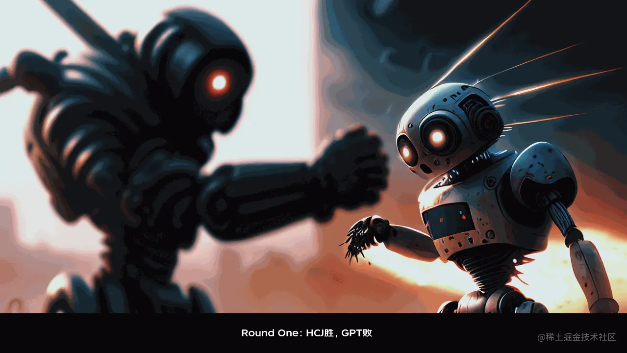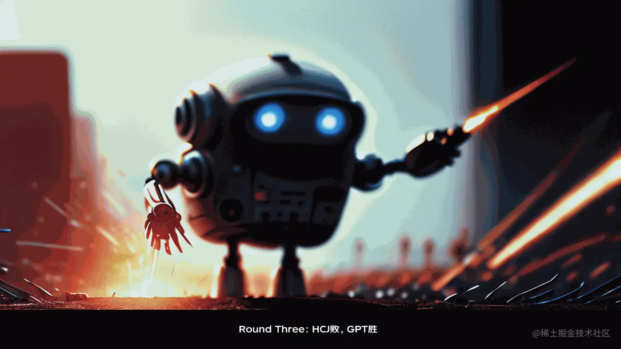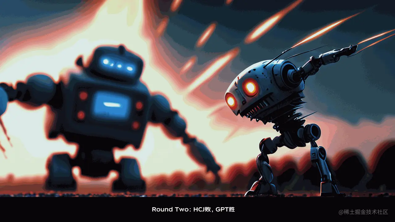 “我宣布,第一轮 HCJ 获胜,”大屏幕上亮起了 HCJ KO GPT 的画面,现场响起雷鸣般的掌声。