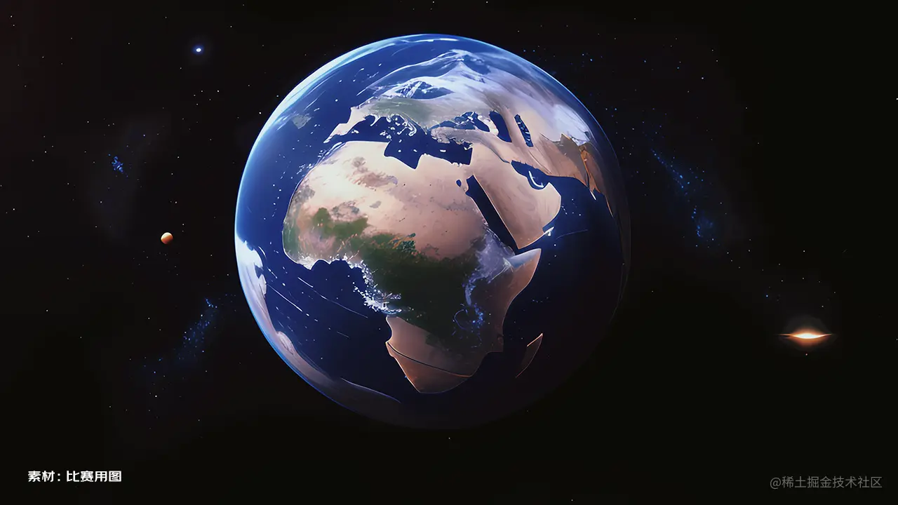 GPT策略:先画出来一个点,然后以这个点为中心扩散,比如:这个点是中国,那么离中国多远是俄罗斯,离俄罗斯多远是加拿大,然后,每一个点即代表一个国家名称,而线与线之间形成的轨迹,就是该国家的领土面积,再然后,给该板块涂抹不同的颜色,绘制成整个地球,最后,根据当前时间,让地球自转起来。