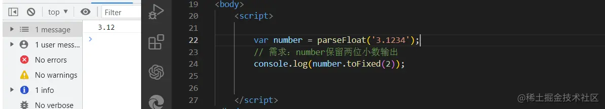 toFixed方法主要用于处理小数,参数接收一个值,就是你要保留的小数位数。