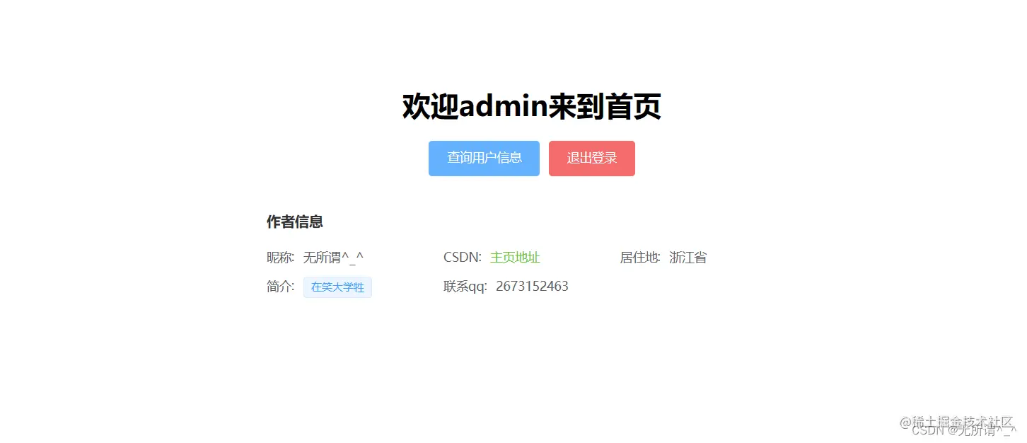- 登录成功后,应该将用户信息存储在sessionStorage或者localStorage中,这样方便前端拿用户信息