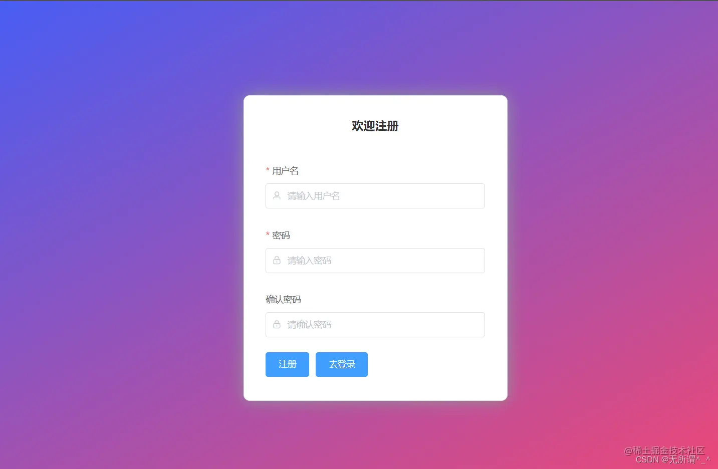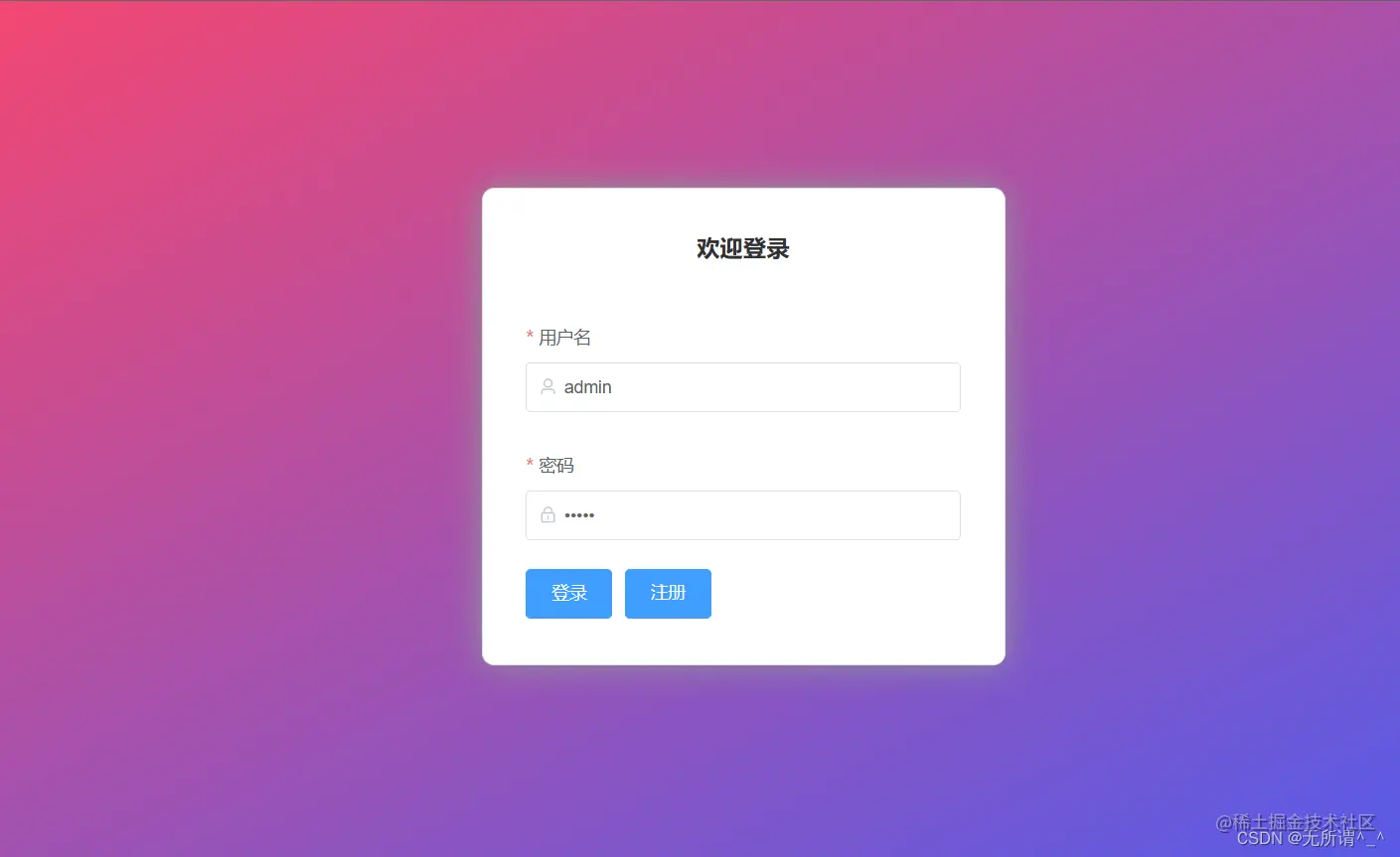 - 没有进行校验,可以同时注册多个用户名和密码相同的用户,这样用户登录时,后端如果不处理,会查询出多个用户,就会报One record is expected, but the query result is multiple records错误