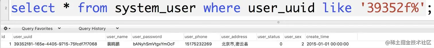 大家看到,user_uuid 我只需要给出一部分就能唯一锁定一条记录。