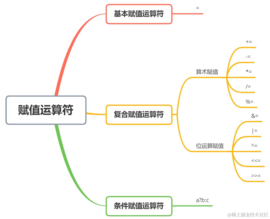 - 条件赋值运算符(?:)是一种特殊的赋值运算符