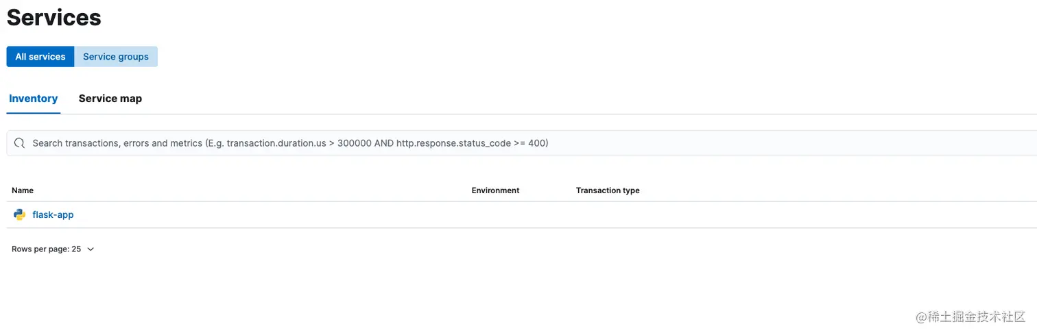 添加 Elastic APM 依赖项很简单 —— 检查 github 存储库中的 app.py 文件,你会注意到以下代码行。