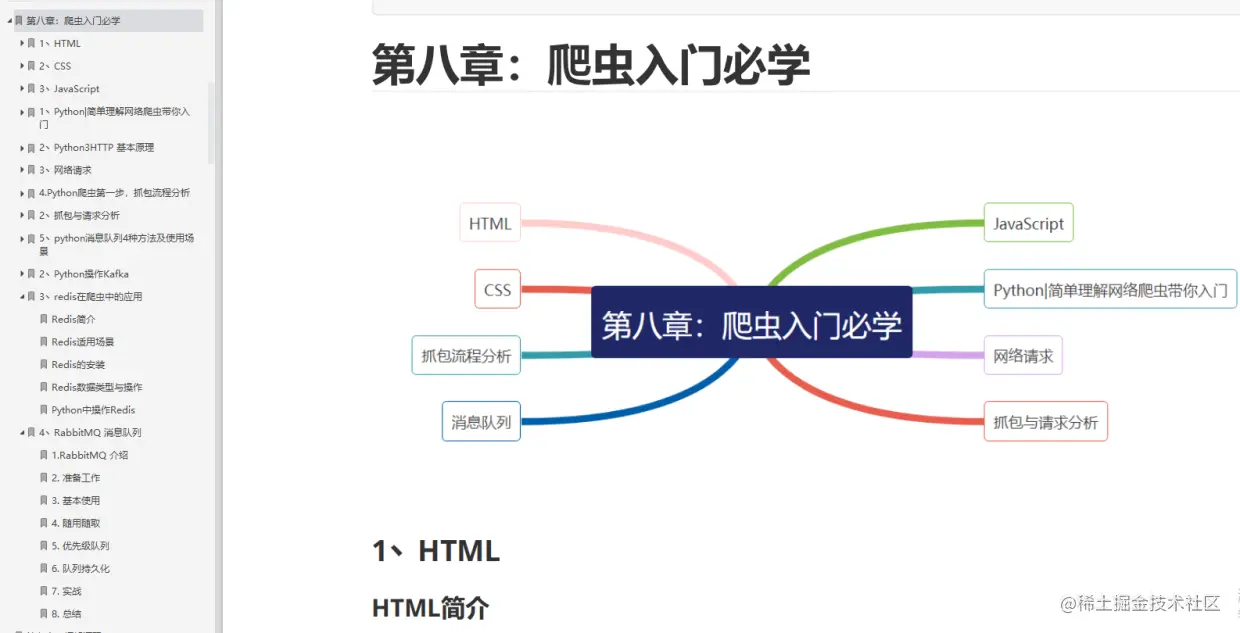 80页内容,HTML丶CSS丶JavaScript丶爬虫入门丶网络请求丶抓包与请求分析丶Kafka丶Rabbitmq消息队列