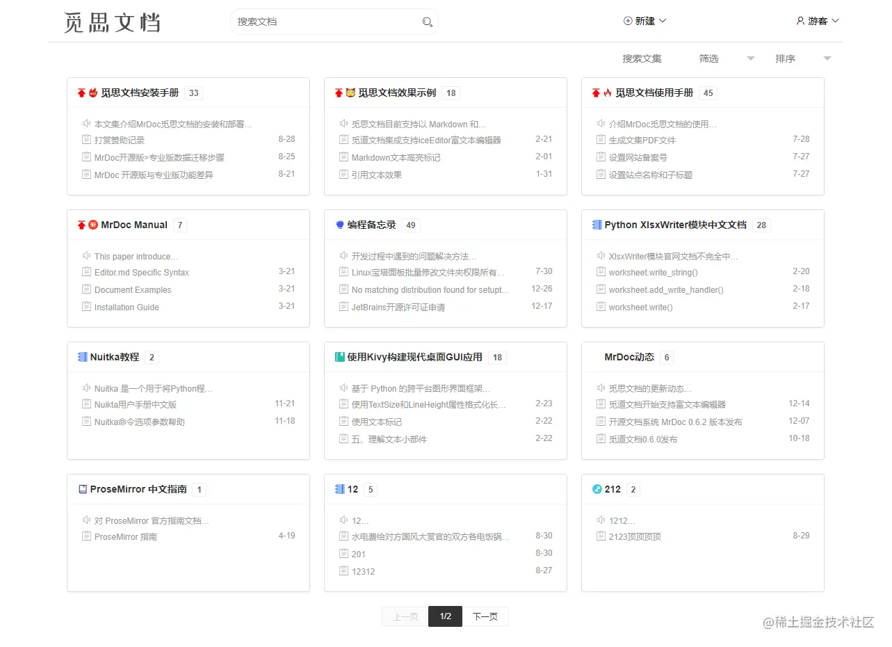 MrDoc 觅思文档是基于 Python 语言的 Django 框架开发并开源的在线文档系统。