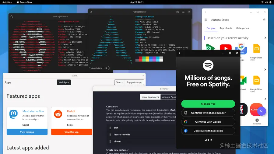 - Android 应用程序现在开箱即用(使用 WayDroid),可以轻松地从应用程序商店(如 Aurora Store 或 F-Droid)安装它们,并直接运行。