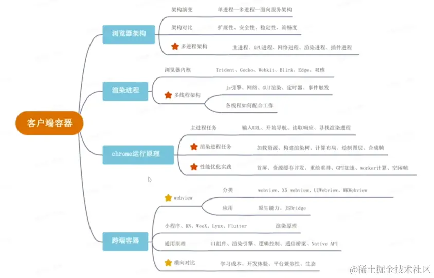 - 多进程架构:浏览器进程、渲染进程、GPU进程、网络进程、插件进程等进程