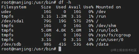 df命令允许你查看文件系统的磁盘空间使用情况。例如,df -h命令将以更易读的方式显示磁盘空间使用情况。