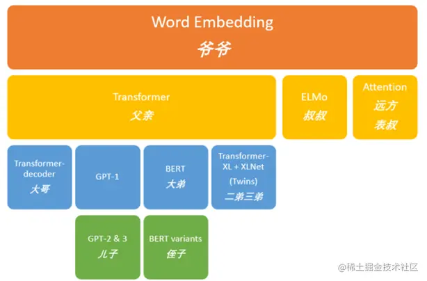 - 其父亲 Transformer 出生于 2017 年一篇叫做 Attention is All You Need 的论文中。