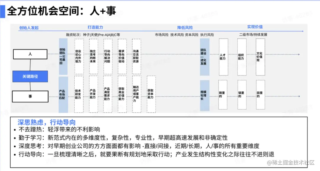 - 首先讲创始人。今天创始人技术能力强,好像很牛、很重要,未来真的不重要。 技术ChatGPT以后都能帮你做。你作为创始人,越来越重要、越来越值钱的是愿力和心力。 愿力是对于未来的独到的判断和信念,坚持、有强的韧劲。这是未来的创始人越来越重要的核心素养。