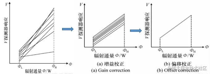 - 因环境温度变化红外热像仪产生的非均匀性,基于定标的非均匀校正算法不再适用。另外,探测器输入的非线性,实际在工程中,外部资源足够的情况下可选用基于多点标定的非均匀校正算法。