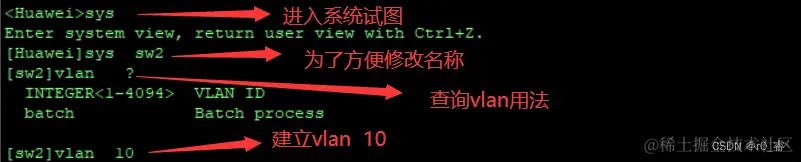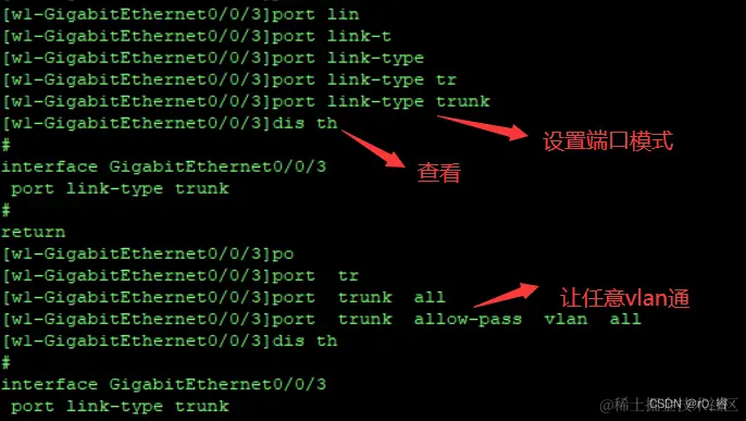 vlan基本配置:1.建立vlan。2.设置 端口的模式(access trunk)。3.将端口加入vlan。