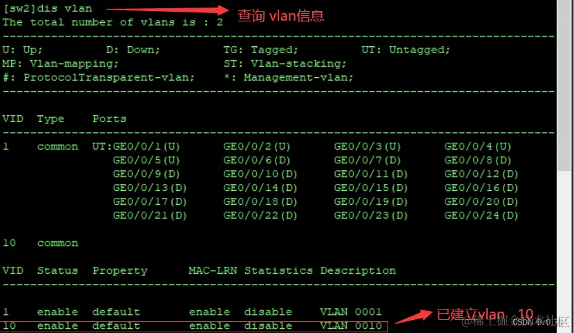 查看vlan 10建立是否成功