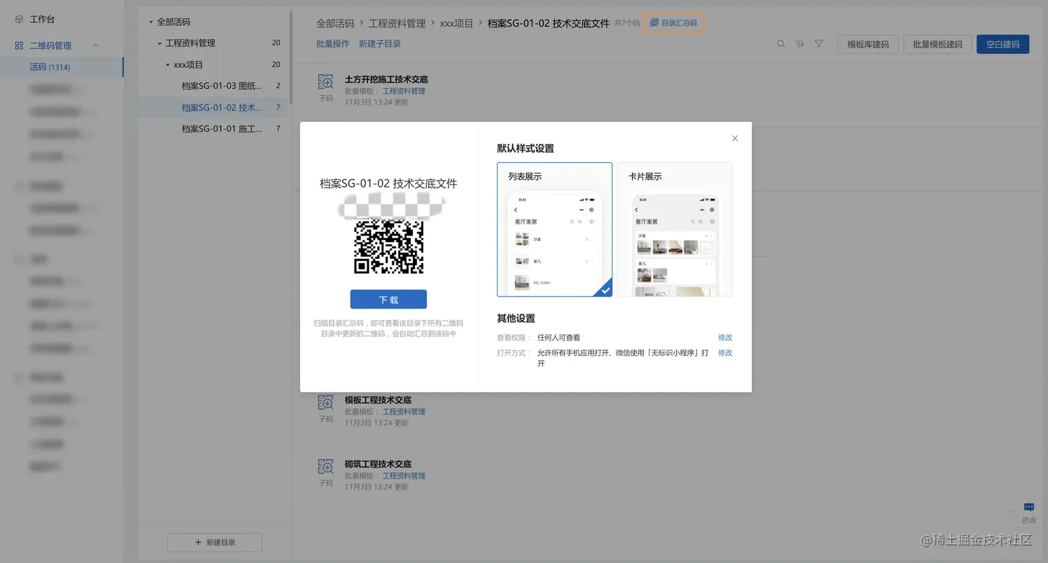 工程资料管理二维码制作起来非常简单,可以在草料二维码平台进行制作,还有免费的模板可以一键套用。本文将对此类二维码的功能和制作方法进行详细描述,感兴趣的读者也可以来到草料二维码官方平台进行制码体验。