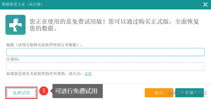- 运行数据蛙恢复专家,进入软件后可先选择 【免费试用】 进行扫描体验;