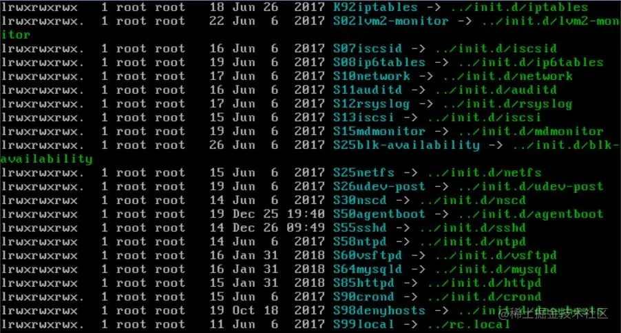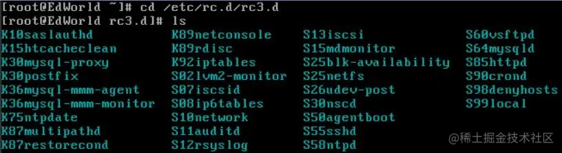 其中rc3.d目录为正常多用户模式下启动需要加载的服务,进入rc3.d目录。查看内容,如图所示 :